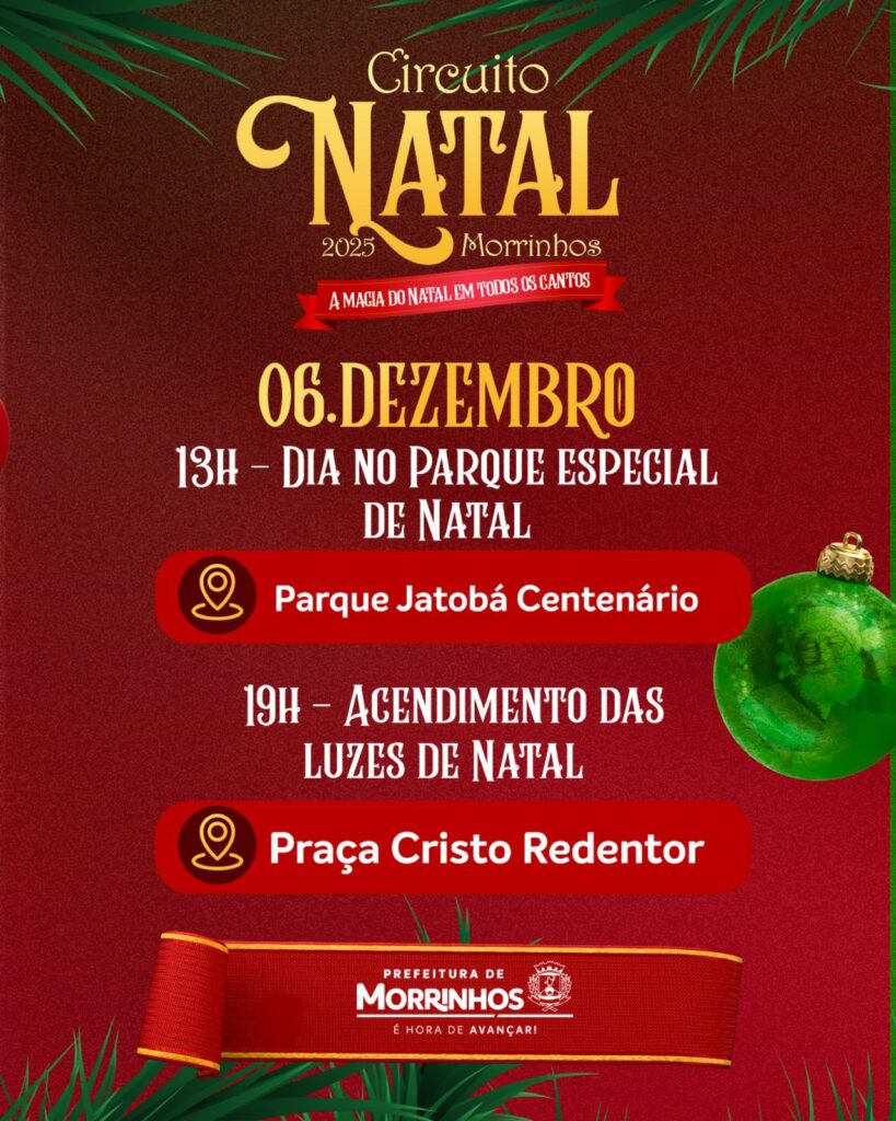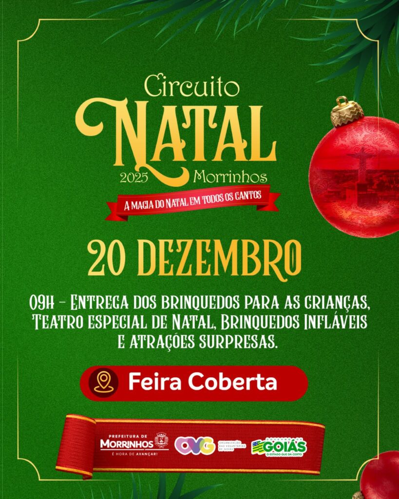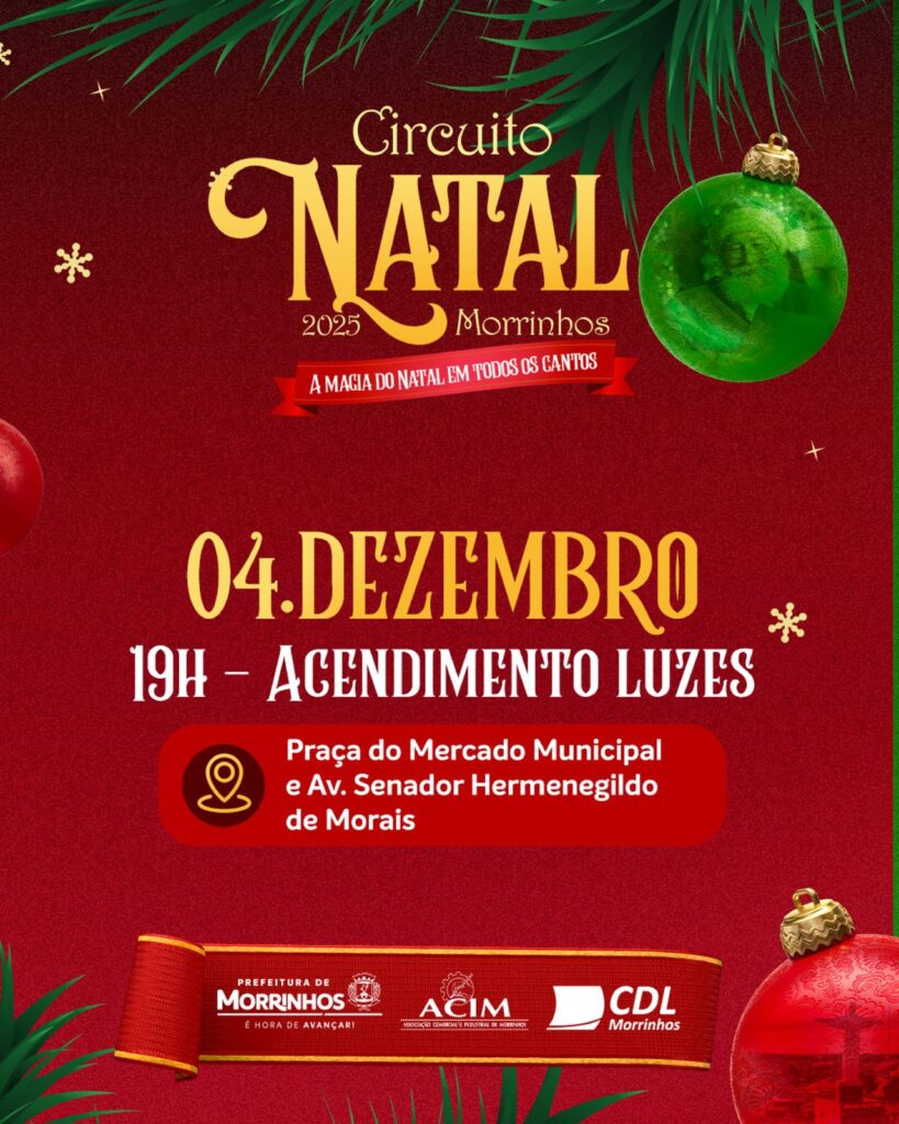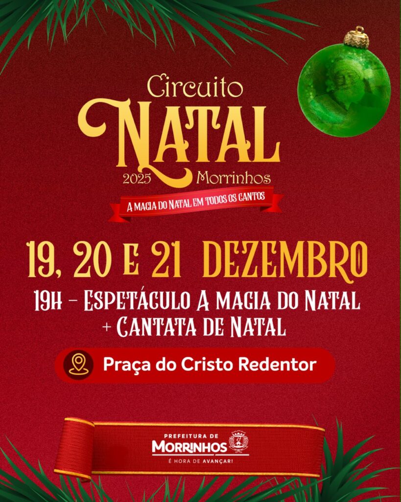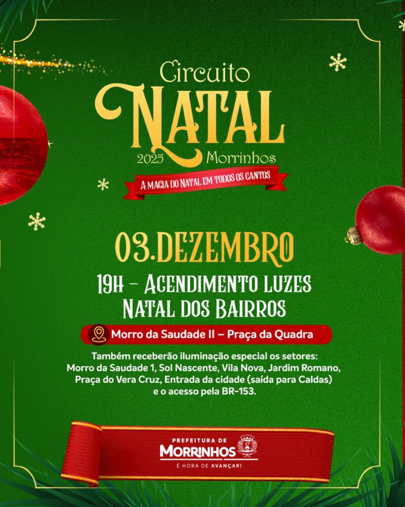 Morrinhos vai viver um dos Natais mais grandiosos de sua história. A Prefeitura está lançando o Circuito de Natal — A Magia do Natal em Todos os Cantos, um projeto inédito que vai transformar a cidade em um grande cenário iluminado, repleto de emoção, cultura e momentos inesquecíveis para toda a família.